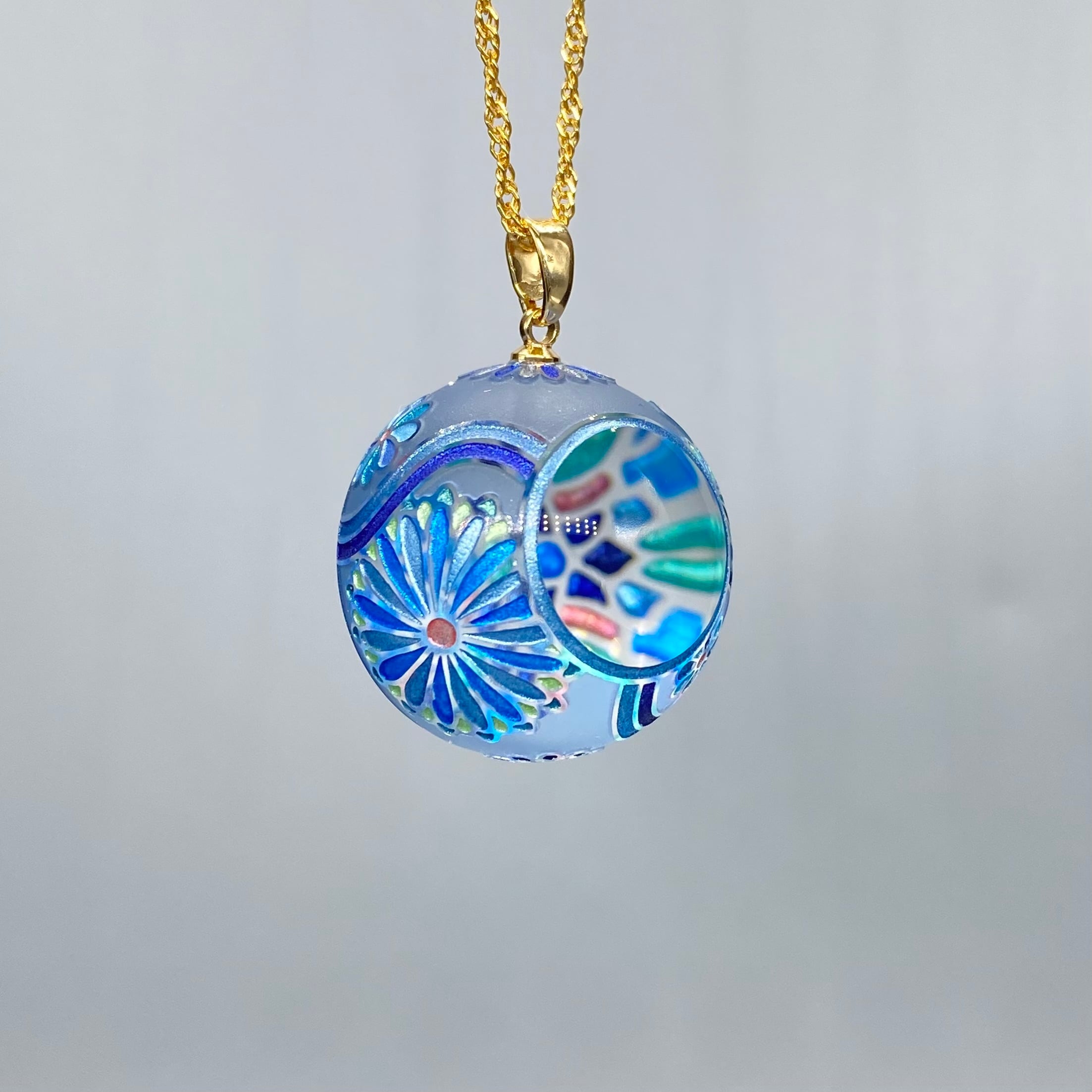 万華鏡ペンダント作品として一番最初に作られた作風で10年以上進化を続けています。